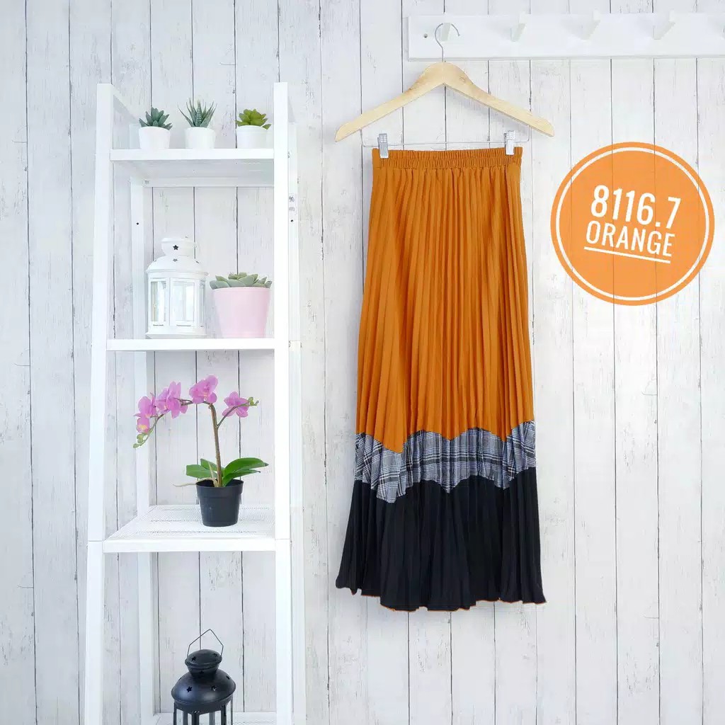 Name: V8116 - Rok Plisket Wanita Pleats Skirt Kombinasi Warna Two Tone