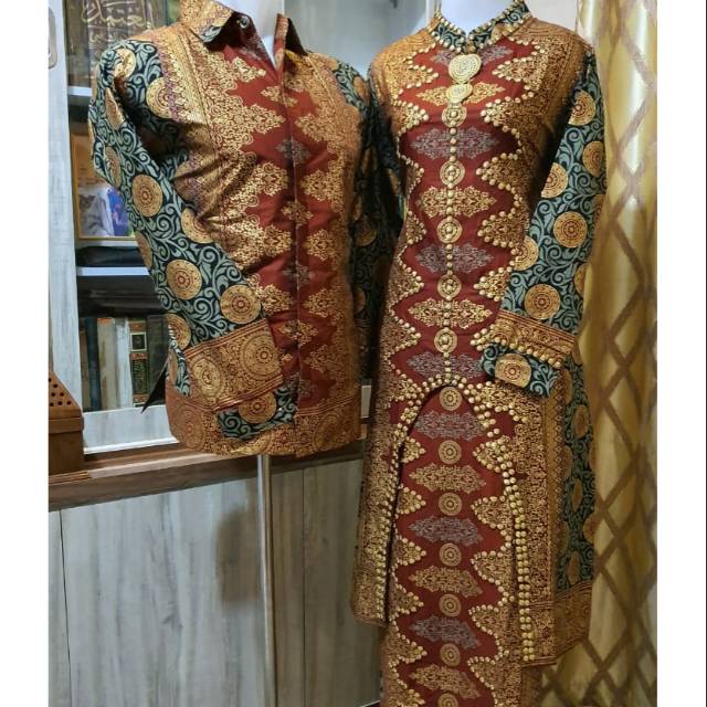 Ada pasangan papa n mama nya nieh motif songket nya lagi nieh. Warna dasar abu2 kombinasi merah n gold