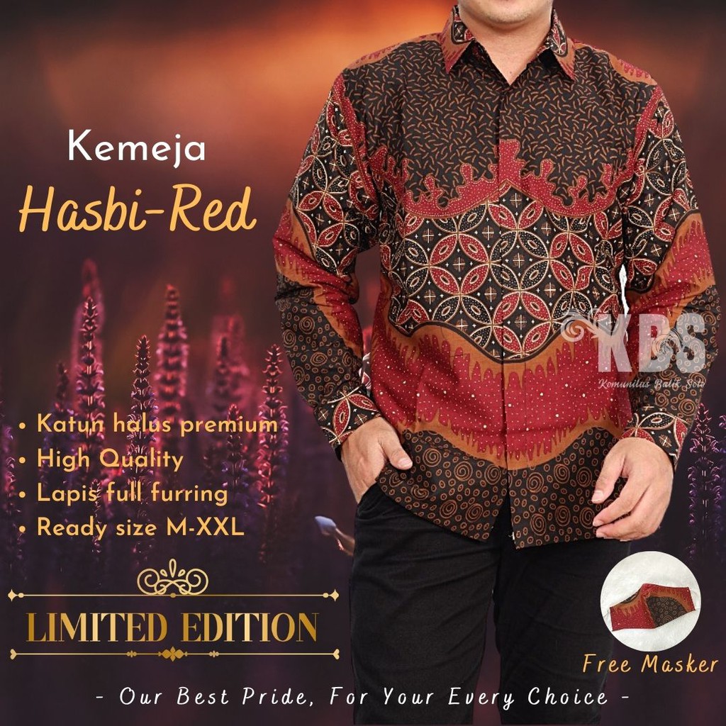 Name: Hasbi-red Kemeja Pria Batik Solo Bahan Katun Halus Premium Sragenan Lapis Furing