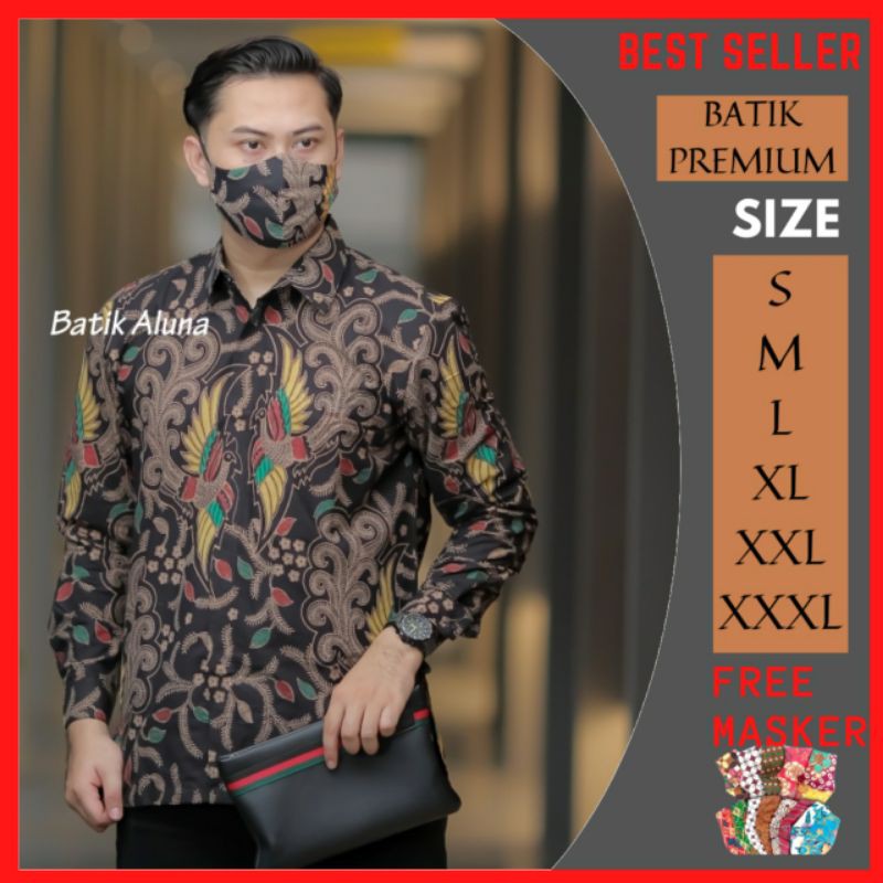 KEMEJA BATIK PREMIUM PRIA LENGAN PANJANG KODE PRODUK PCW 070 FREE MASKER