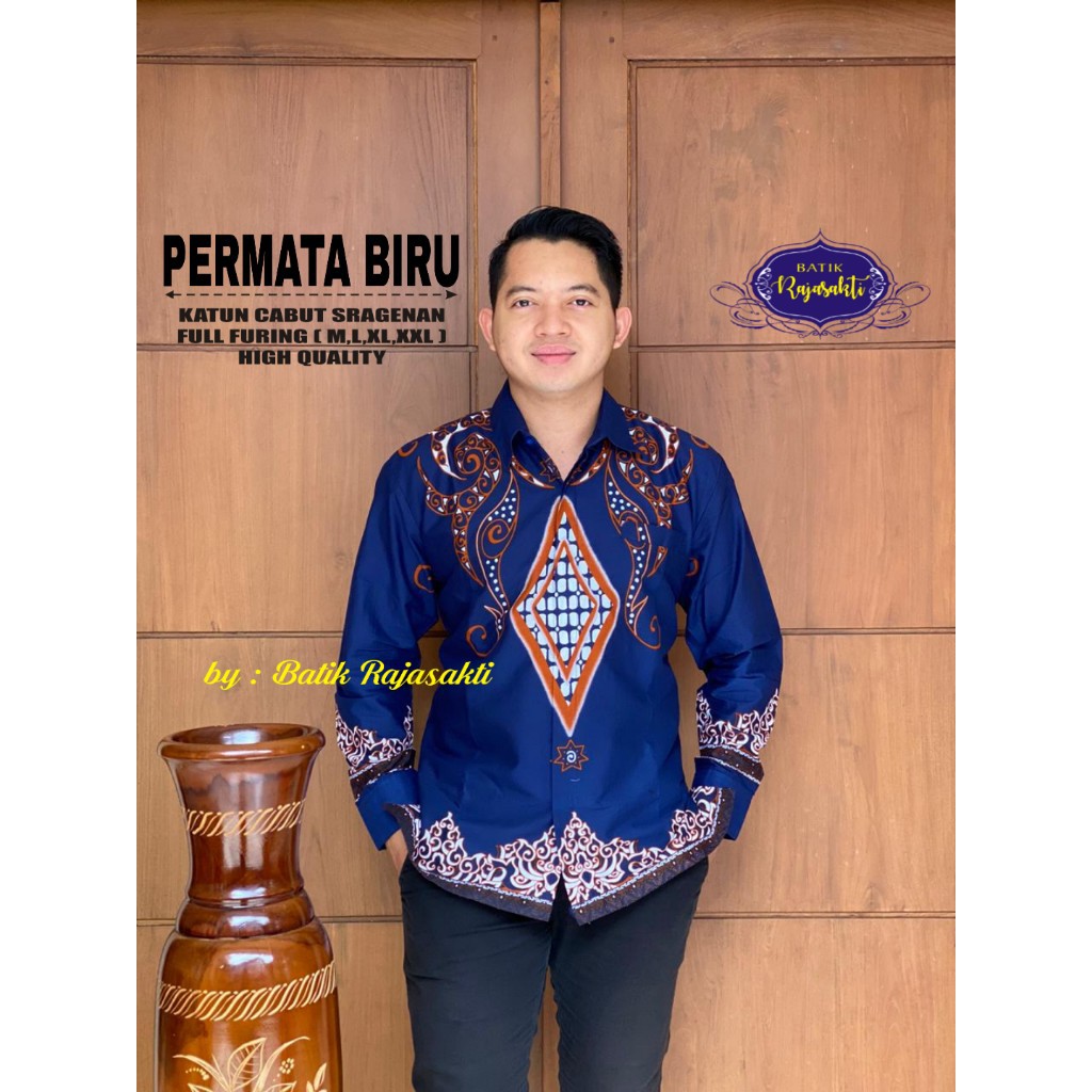 Name: Permata Biru Batik Lengan Panjang Pendek Full Furing Katun Sragenan Hq Size M-xxl Batik Solo Rajasak