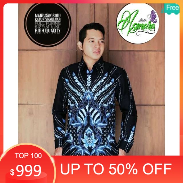 Distributor Pakaian di Kabupaten Asahan Batik Jumbo- Pria Solo Sragenan Manggar Biru Katun Sragenan Motif Terbaru Lengan Panjang dari Sm Batik Original Kota Surakarta (solo)