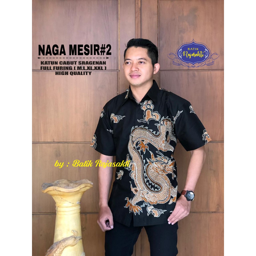Name: Atasan Kemeja Batik Pria Lengan Pendek Premium Naga Mesir 2 Full Furing Rajasakti Solo Ori