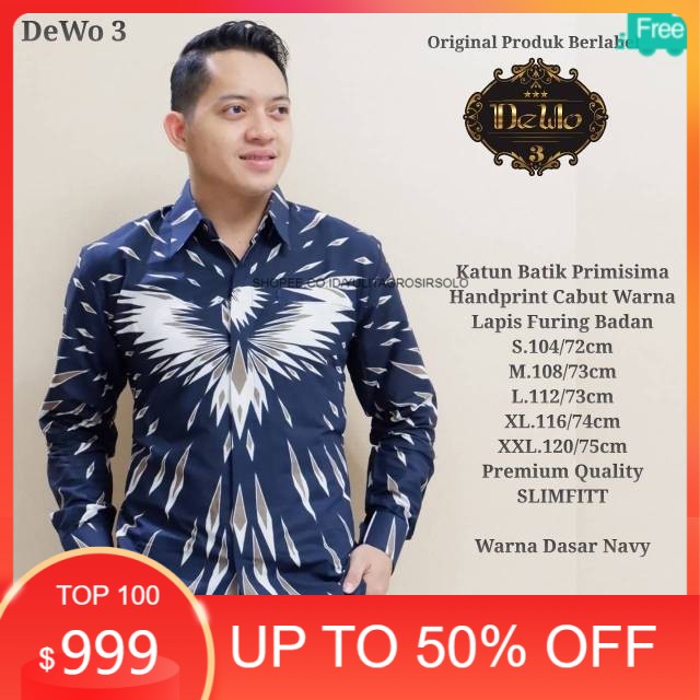 Name: [ori Solo]kemeja Batik Pria Navy Dongker Elegan Keren Slimfit Lapis Furing Termurah S - Xxl