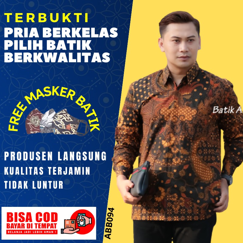 BATIK PRIA PREMIUM LENGAN PANJANG KODE PRODUK ABB 090 FREE MASKER