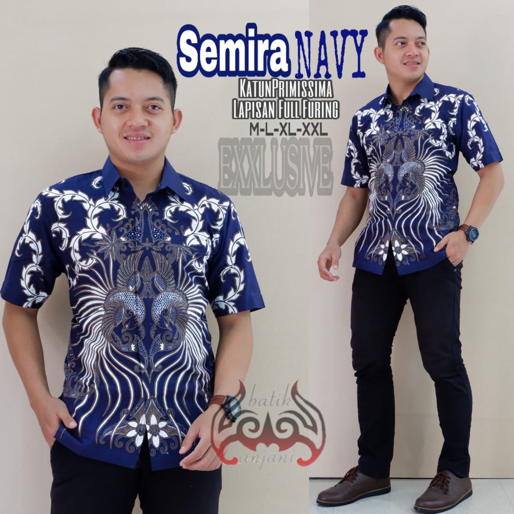 Name: Batik Solo Kemeja Batik Pendek Semira Navy Anjani Batiksoloamanah 130.000