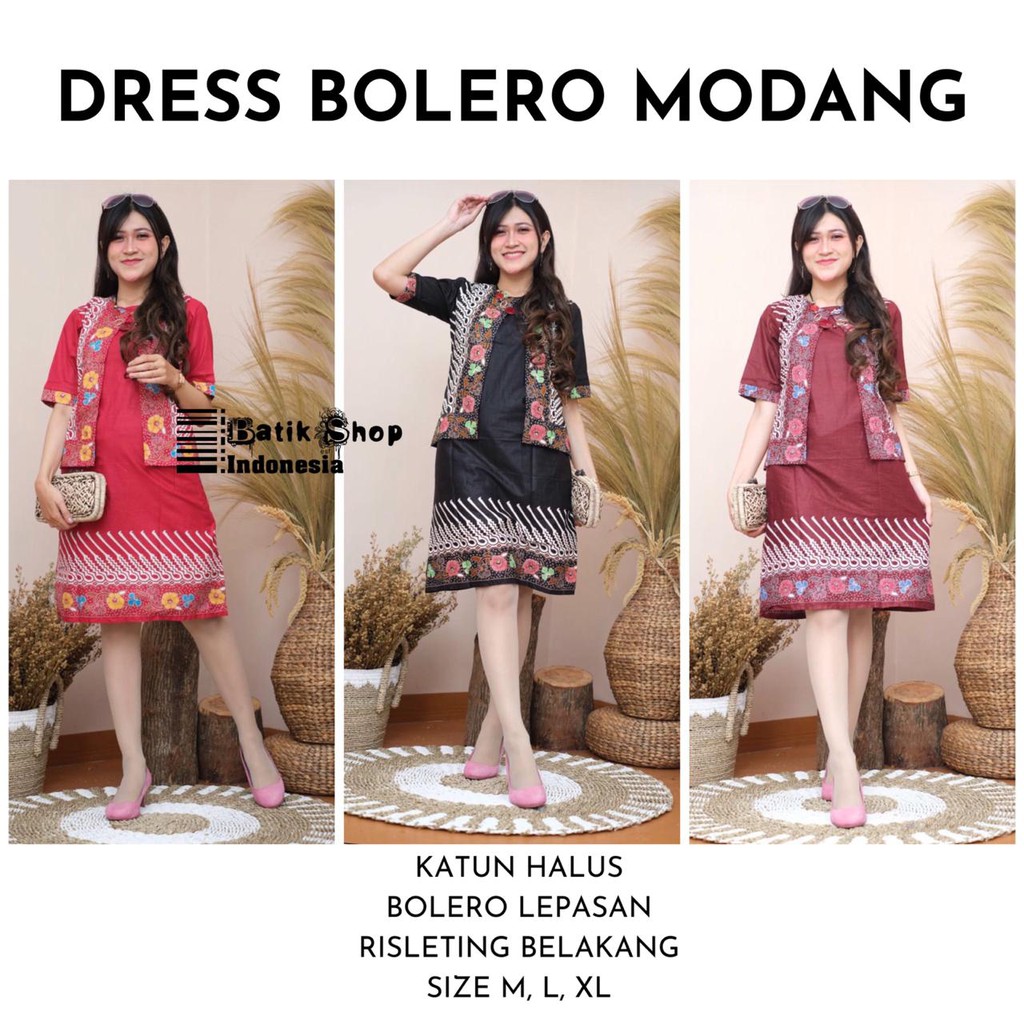 Name: Dress Bolero 2 In 1 Kembang Modang Batik Warna Kondangan Modern Baju Kerja Kantoran Lepasan Rompi