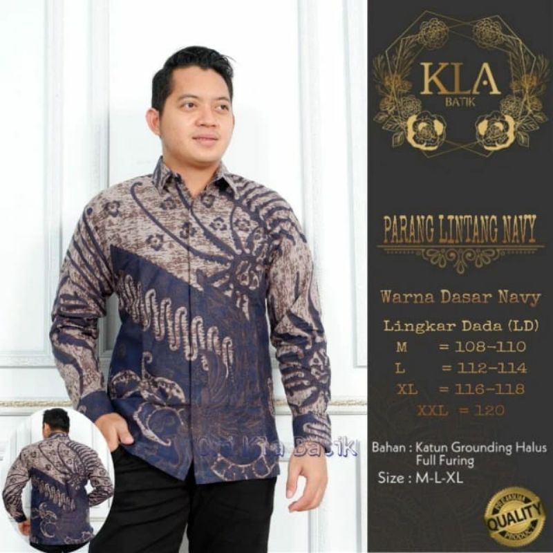 Banting Harga Pakaian di Kabupaten Indragiri Hulu Peksi Navy Batik Pria Lengan Panjang Lapis Furing Batik Solo dari Batik Solo Membara Kota Surakarta (solo)
