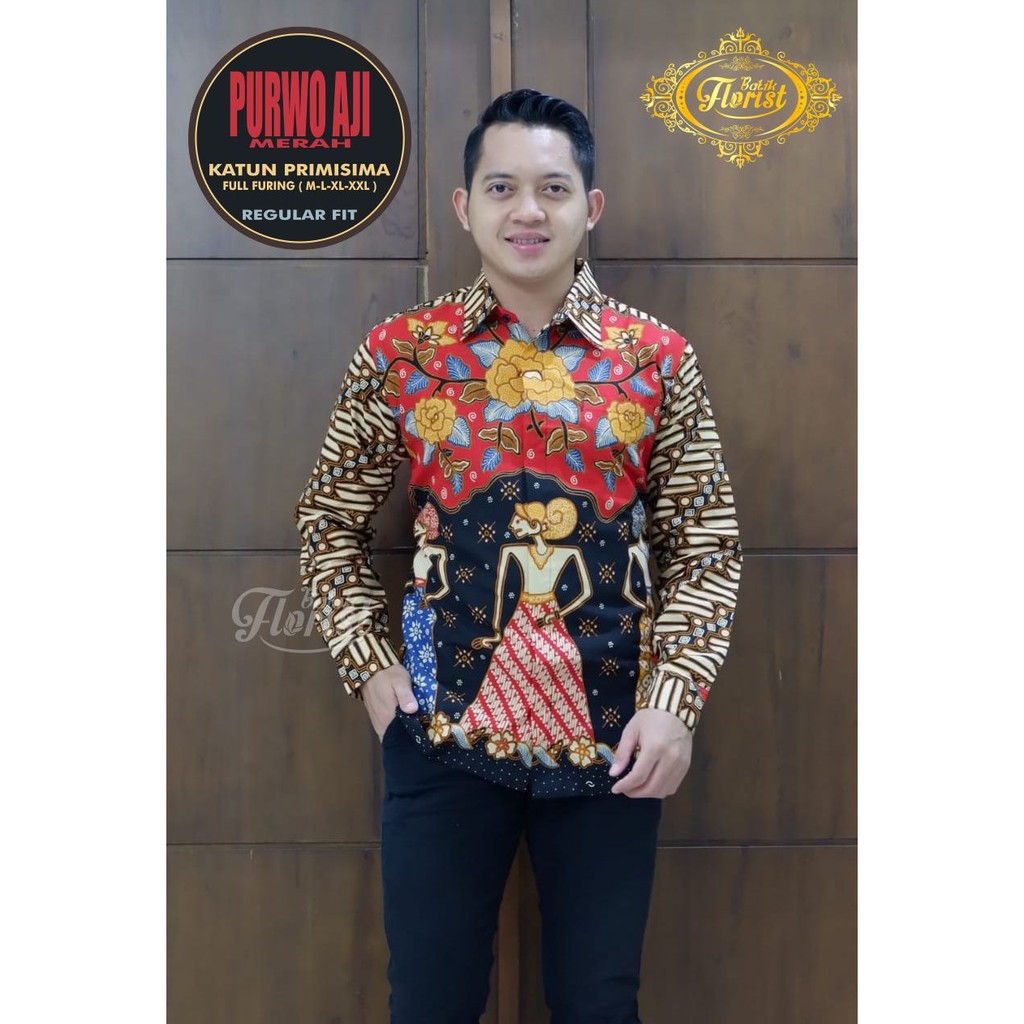 Name: Batik Pria Purwo Aji Merah Size M - Xxl Regular Batik Solo Halus Asli Katun Sragenan Full Furing